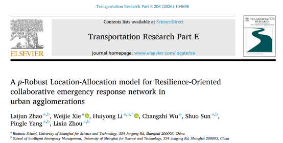 Zhao, L., Xie, W., Li, H., Wu, C., Sun, S., Yang, P., & Zhou, L. (2026). A p-robust location-allocation model for resilience-oriented collaborative emergency response network in urban agglomerations.