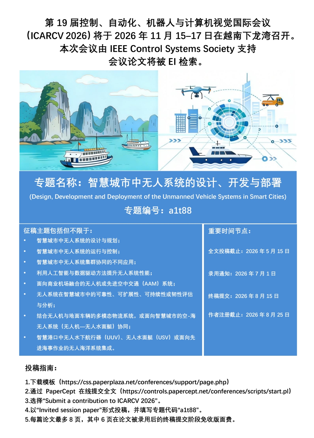 【征稿通知】ICARCV 2026特邀专题(EI检索)