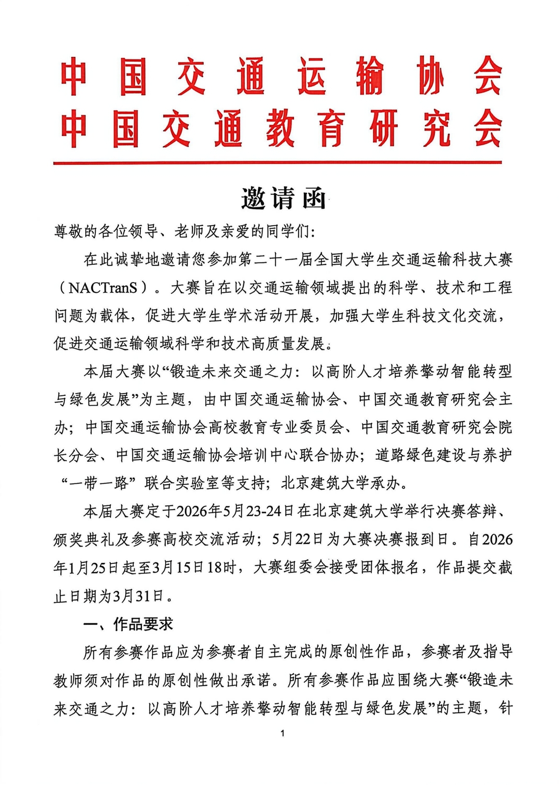 邀请函 | 第二十一届全国大学生交通运输科技大赛